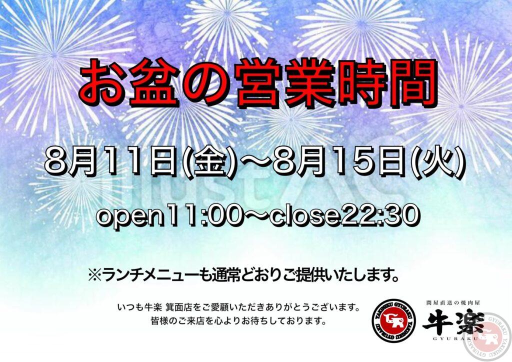 お盆の営業時間のご案内。
